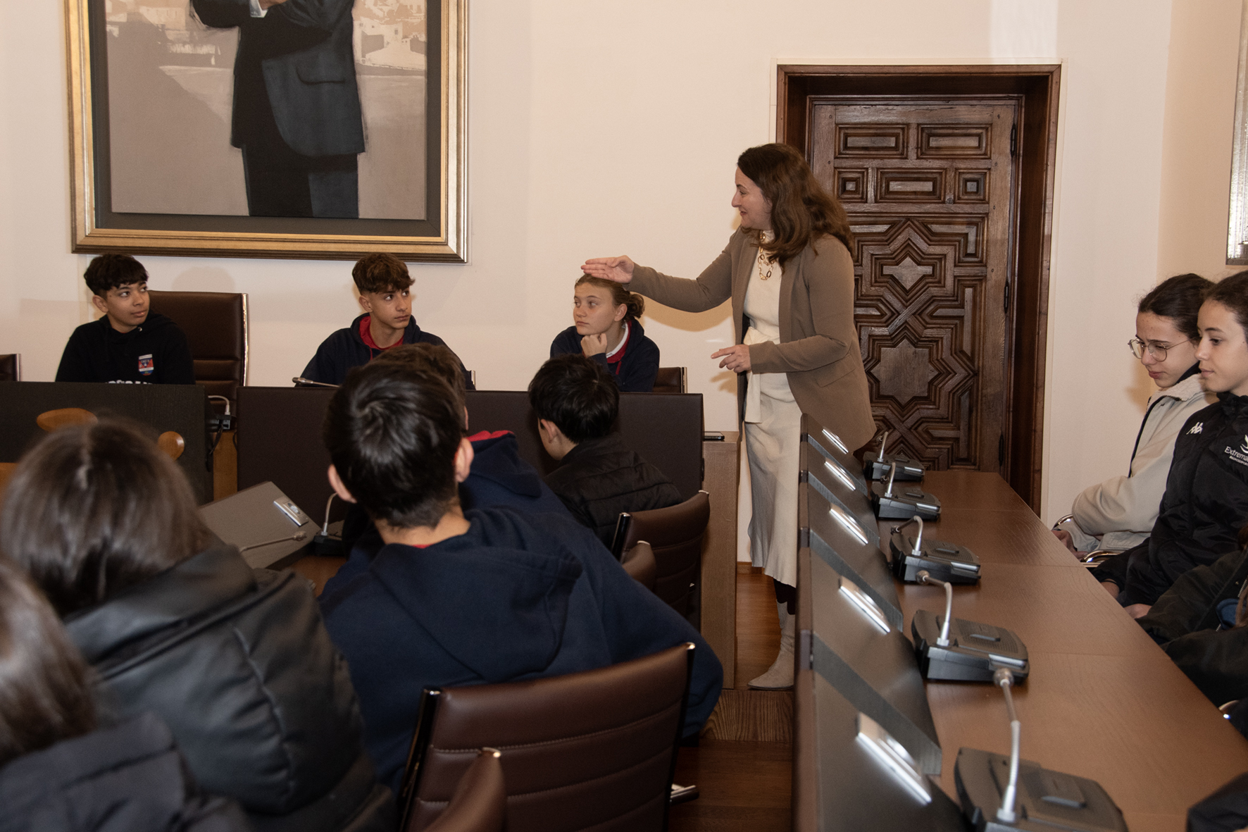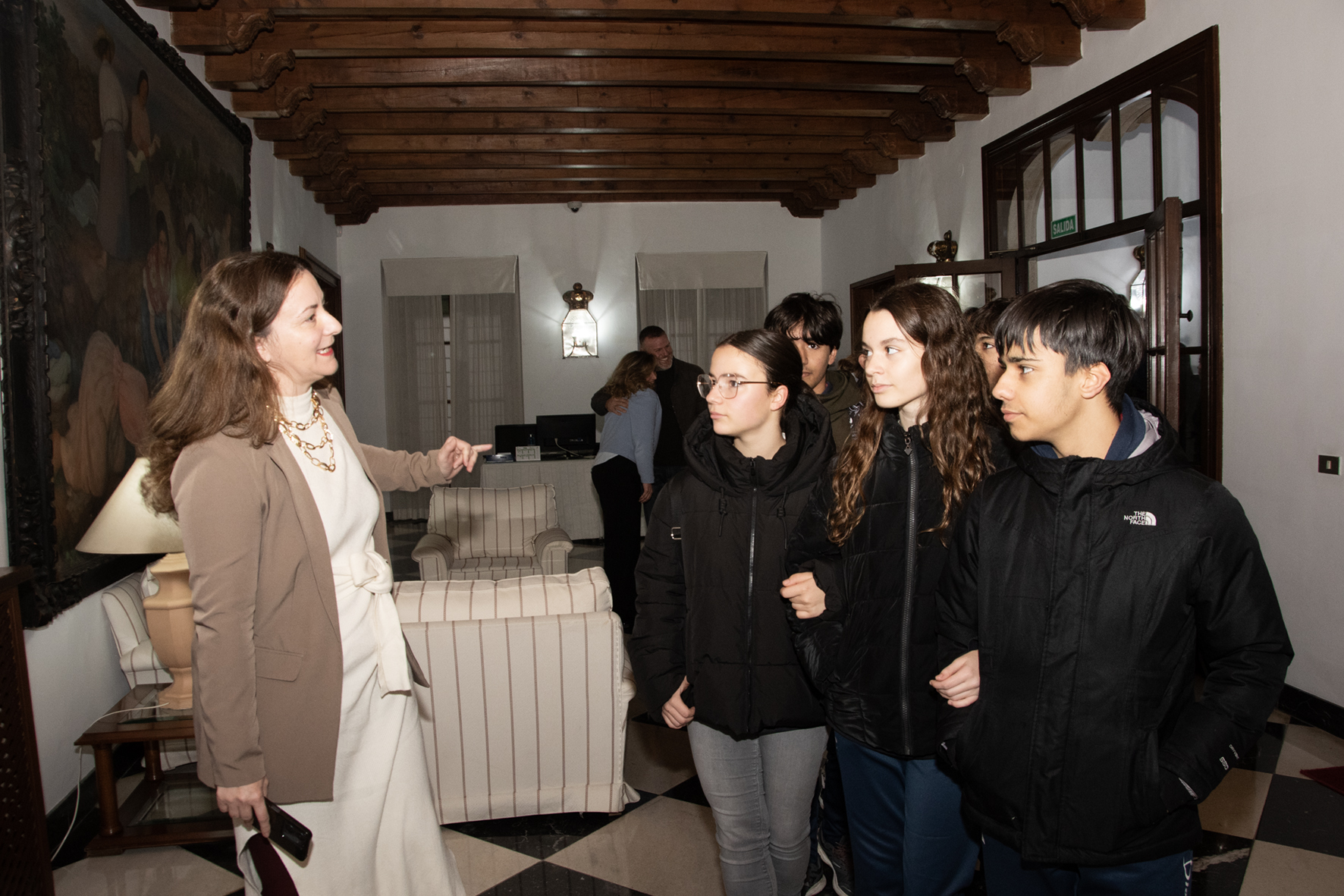 La vicepresidenta segunda de Hacienda y Administración General de la Diputación de Cáceres, Isabel Ruíz Correyero, ha recibido a un grupo de estudiantes del Colegio Diocesano de Cáceres, que han querido conocer desde dentro esta institución provincial y el papel que juega para el desarrollo territorial y el avance de los pueblos de la provincia. «Ayuntamiento de ayuntamientos» la ha definido Ruíz Correyero, incidiendo en que el objetivo final de la diputación es dar los mejores servicios a la ciudadanía y hacer que los pueblos «sean lugares para quedarse, vivir y desarrollar un proyecto de vida».