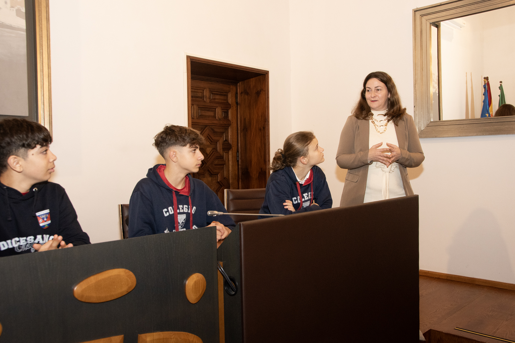 El colegio Diocesano de Cáceres, visita el salón de Plenos de la Diputación provincial. Han sido recibidos por la vicepresidenta segunda de Hacienda y Administración General