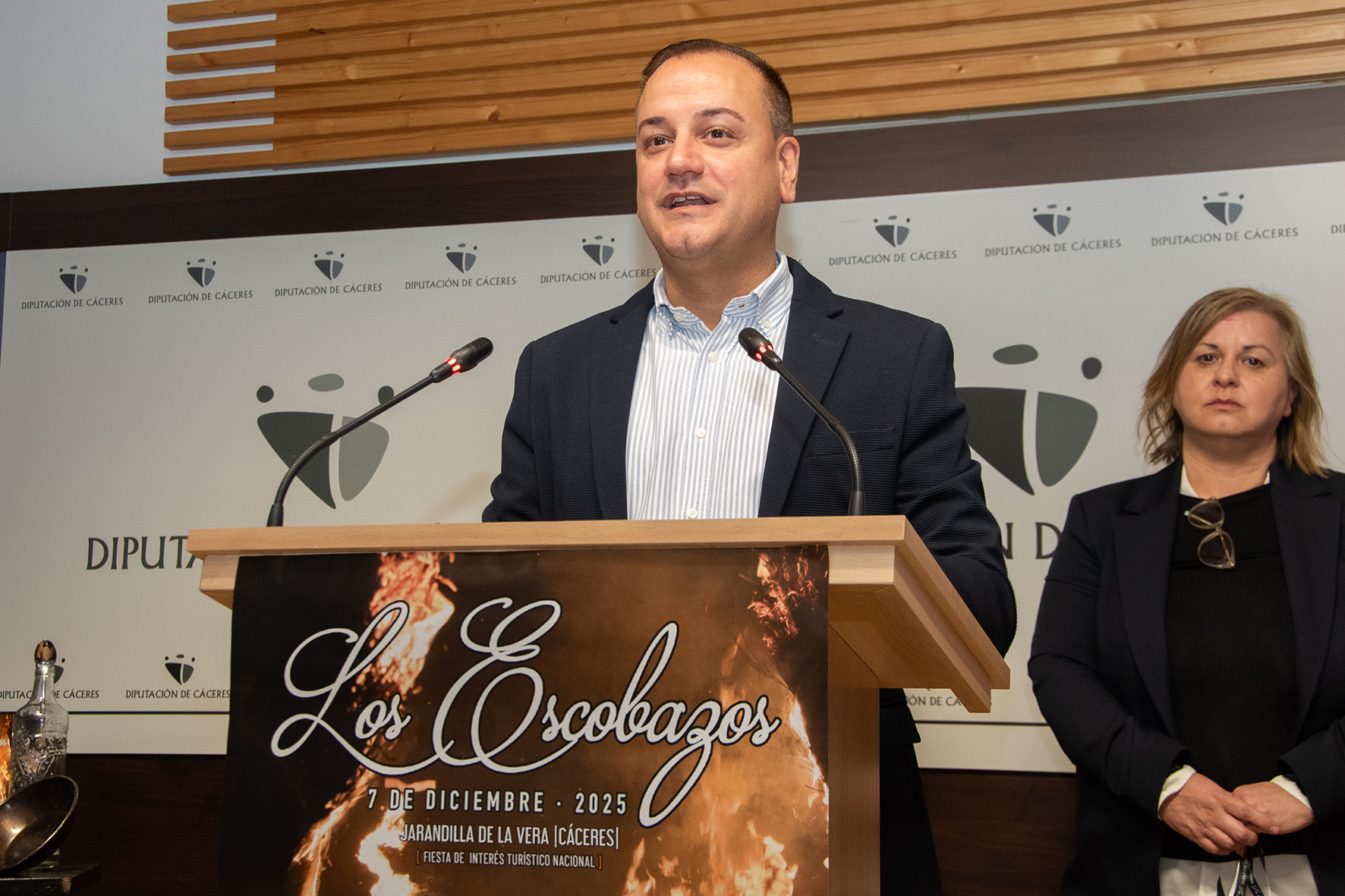La diputada de Turismo de la Diputación de Cáceres, Elisabeth Martín Declara, ha querido acompañar al teniente alcalde jarandillano, Pablo Miguel López, en la presentación de esta nueva edición, que espera reunir a más de 12.000 personas en torno a la magia y al poder del fuego, de los escobones, de las danzas y los cánticos, que resuenan con un poder tal que propicia el hermanamiento entre unos y otros, al menos así lo relatan quienes han vivido esta fiesta.