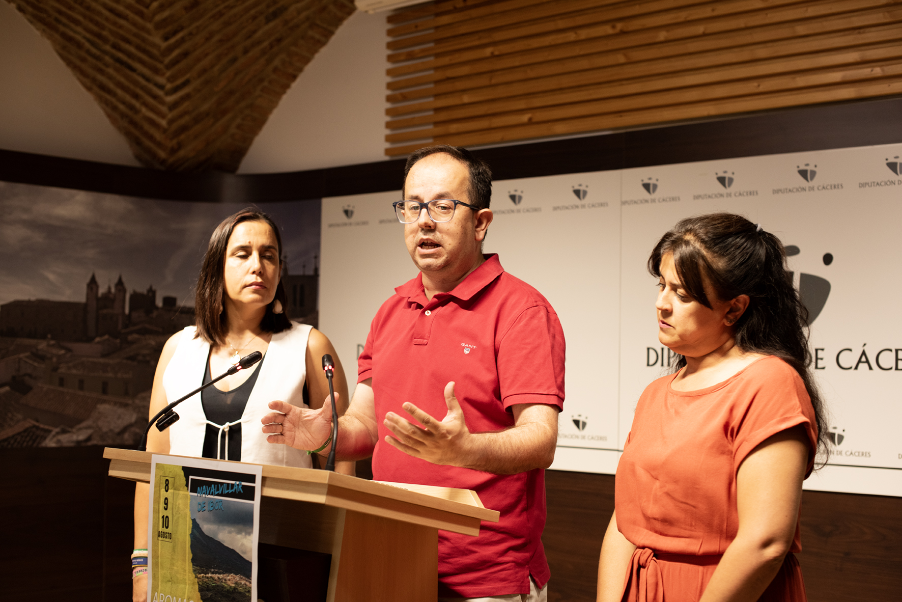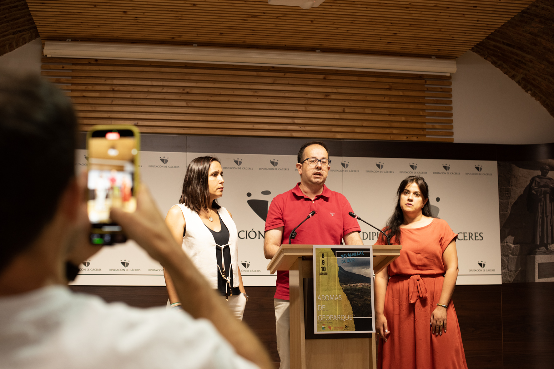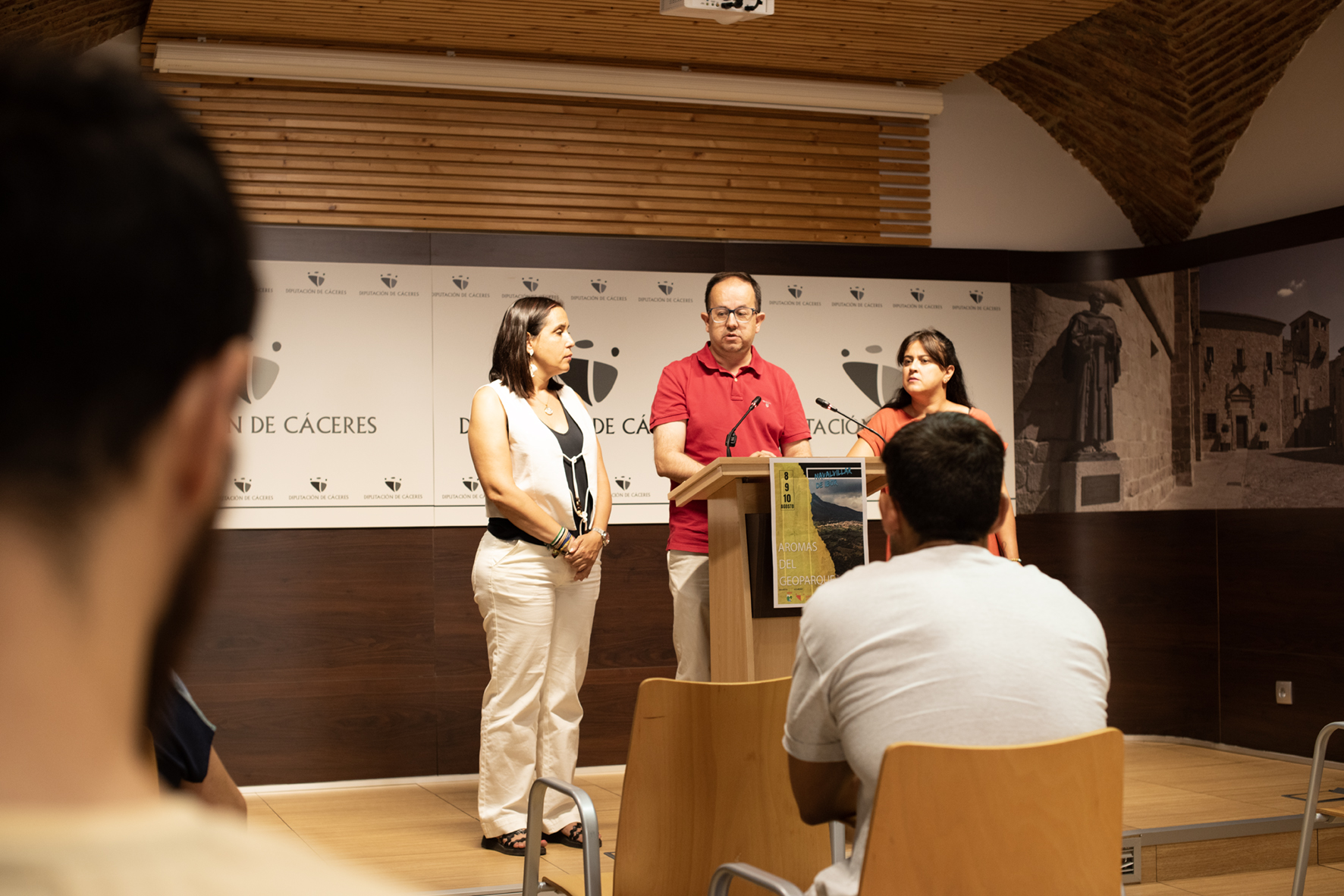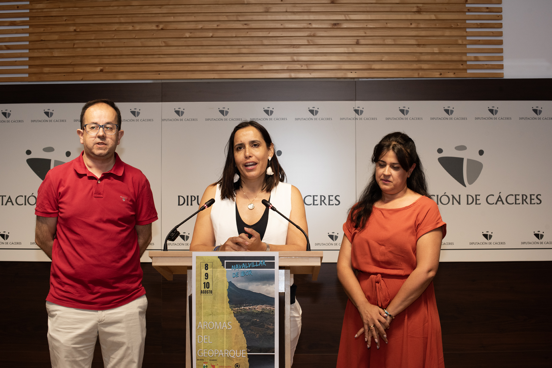 29/07/2025, Cáceres.- “Una vez más se demuestra que pequeños pueblos pueden hacer grandes cosas”. La diputada de Agricultura y Ganadería de la Diputación de Cáceres, Angélica García, ha acompañado al alcalde de Navalvillar de Ibor, Javier Díaz Cieza, en la presentación de la segunda edición de la “Feria de los Aromas del Geoparque”, un evento “que nace de un municipio con apenas 400 habitantes, y que ya nació con el afán de convertirse en un referente más de la riqueza gastronómica, agroganadera, cultural y medioambiental del Geoparque Mundial UNESCO Villuercas-Ibores-Jara”.
