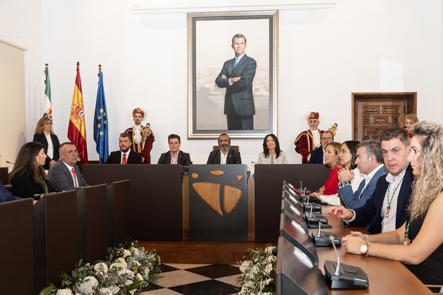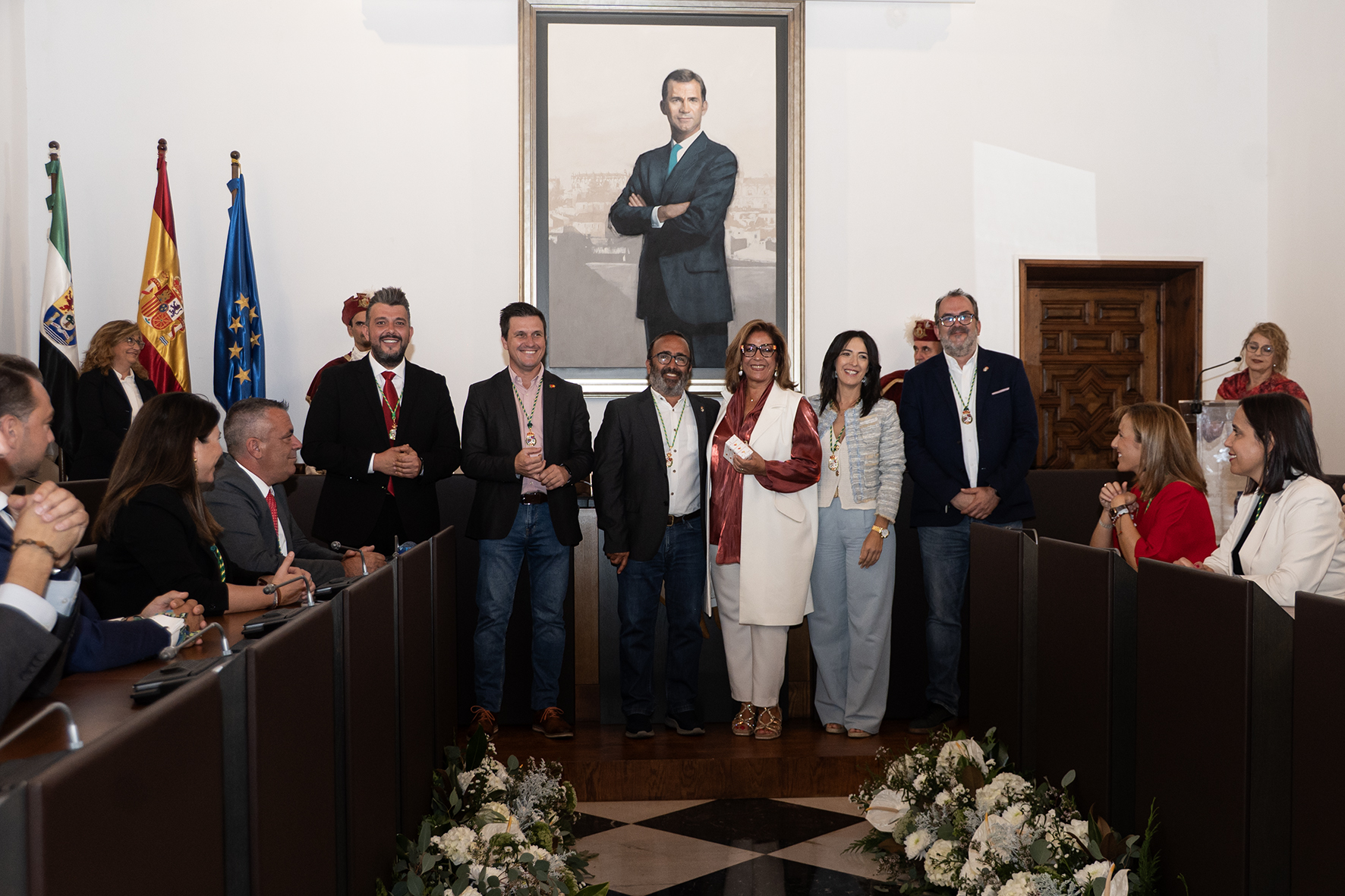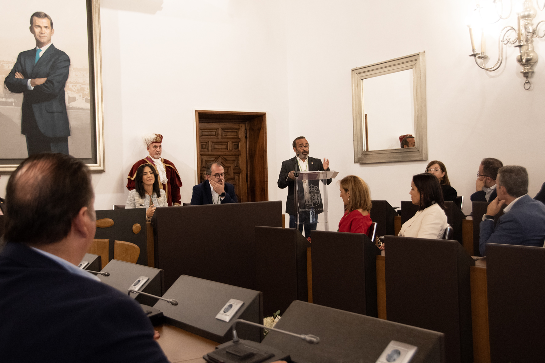Un salón de plenos repleto de compañeros y compañeras de los homenajeados, además de familiares, miembros de la corporación provincial y otras autoridades y representantes públicos y territoriales que han querido celebrar este día grande de la Diputación de Cáceres.