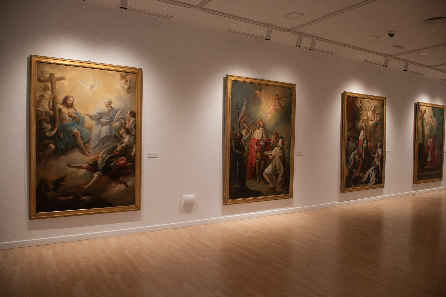 La colección pictórica primigenia estuvo compuesta por diez lienzos, encargados a José Camarón Bonanat, su hijo Juan José Camarón y Meliá y su taller, pinturas de tema religioso, seis de las cuales están presentes en la exposición, que ilustran las virtudes jurisdiccionales y los valores morales del poder como ejercicio de fe, prudencia y caridad.