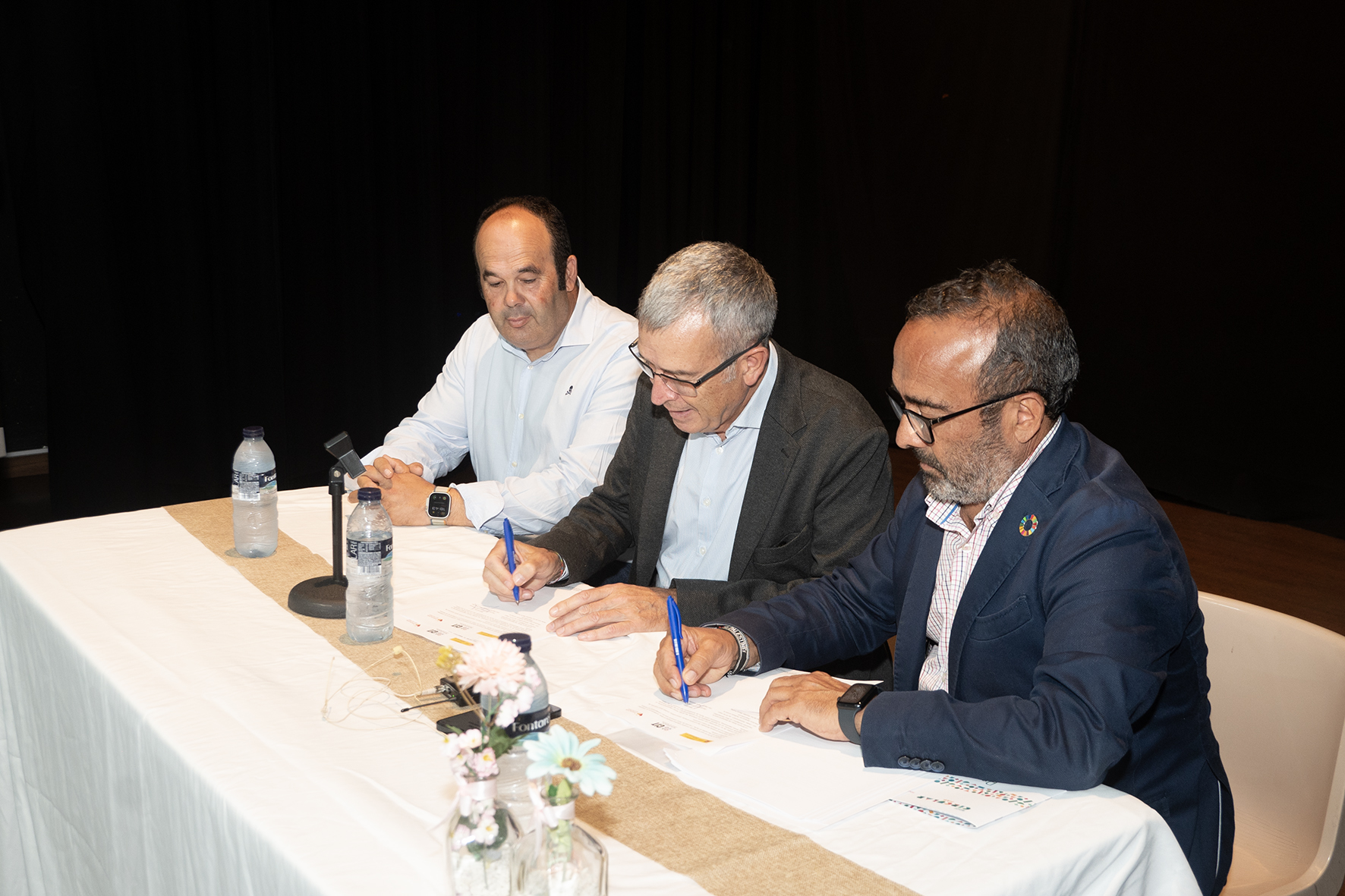 Durante la jornada, el presidente de la Diputación de Cáceres, Miguel Ángel Morales y el secretario para el Reto Demográfico, Francés Boya, han firmado la renovación del convenio de colaboración entre la Diputación de Cáceres y el Ministerio para la Transición Ecológica y el Reto Demográfico, en el marco de la Red CIT. Este convenio da continuidad a la adhesión del conjunto de la Red Circular FAB a esta iniciativa estatal, que tiene como misión fomentar desde lo local modelos de innovación orientados a la transformación económica, social y medioambiental del territorio desde la perspectiva de afrontar el reto demográfico.