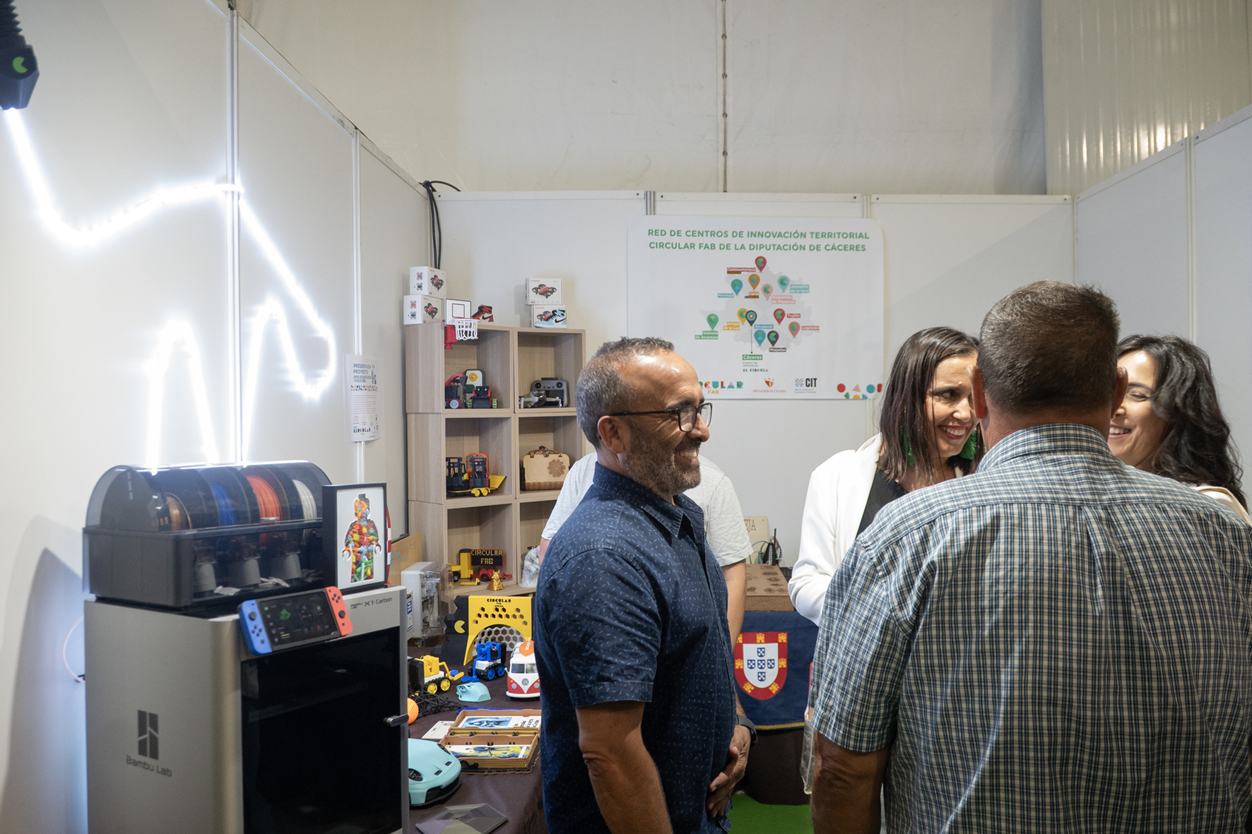Por otro lado, también tiene su espacio la Circular FAB de Moraleja, uno de los nueve centros que conforman la Red Circular FAB de la provincia de Cáceres. Un espacio abierto de innovación, ideado por la Diputación de Cáceres para ayudar a las personas y las empresas dela provincia a incorporarse a la Cuarta Revolución Industrial, y que pone a disposición de la ciudadanía una serie de actividades, tecnologías y recursos para poner en marcha una iniciativa de empleo.