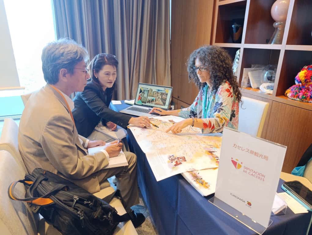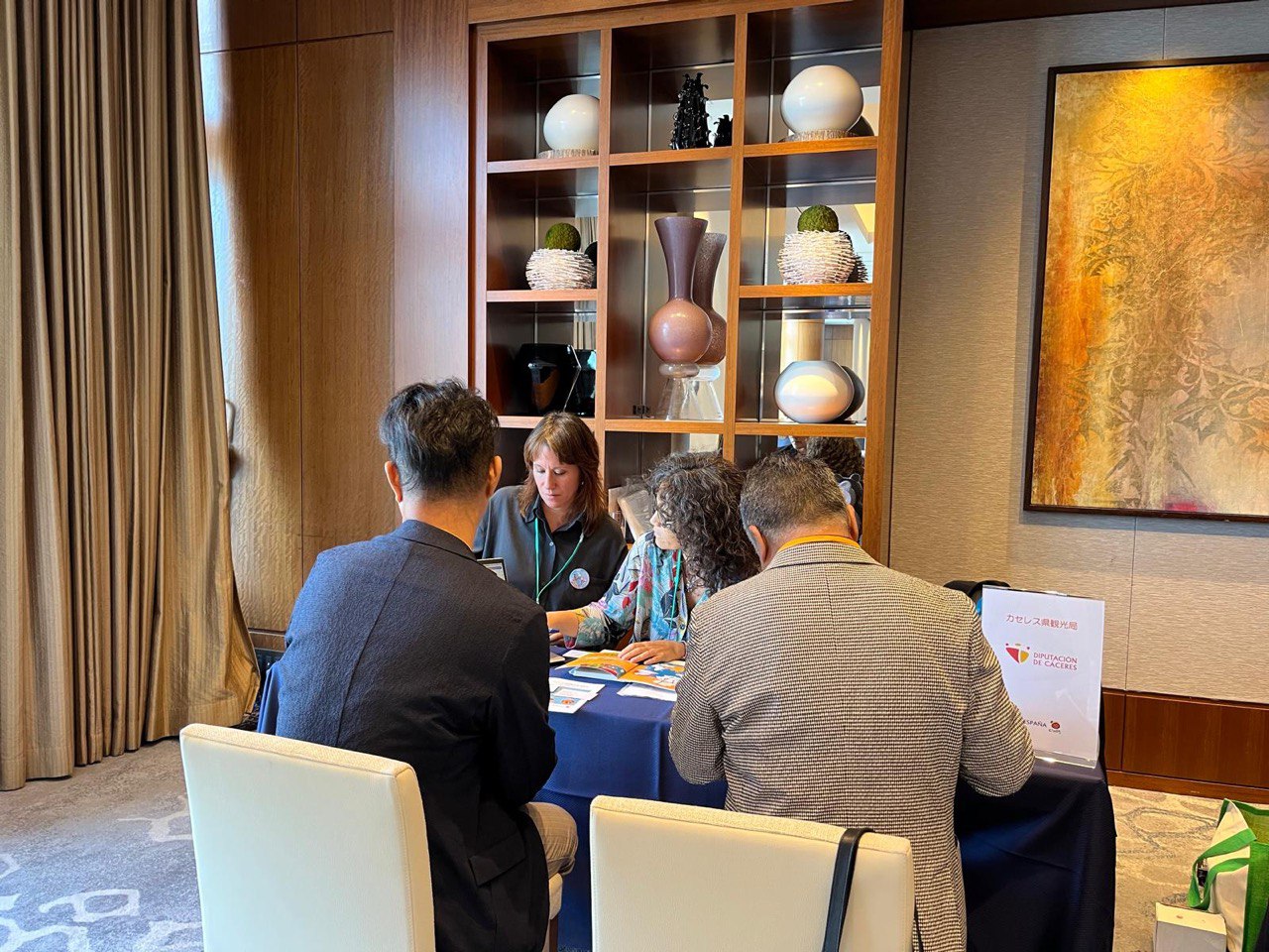 Previo al comienzo de la feria, el equipo técnico de la Diputación de Cáceres ha participado en un workshop con operadores turísticos japoneses organizados por la Oficina Española de Turismo en Tokio, donde se ha dado a conocer la oferta turística de la provincia y se han destacado aquellos productos que son más demandados por el público japonés que visita España: naturaleza y desconexión activa, gastronomía local, cultura y patrimonio.
