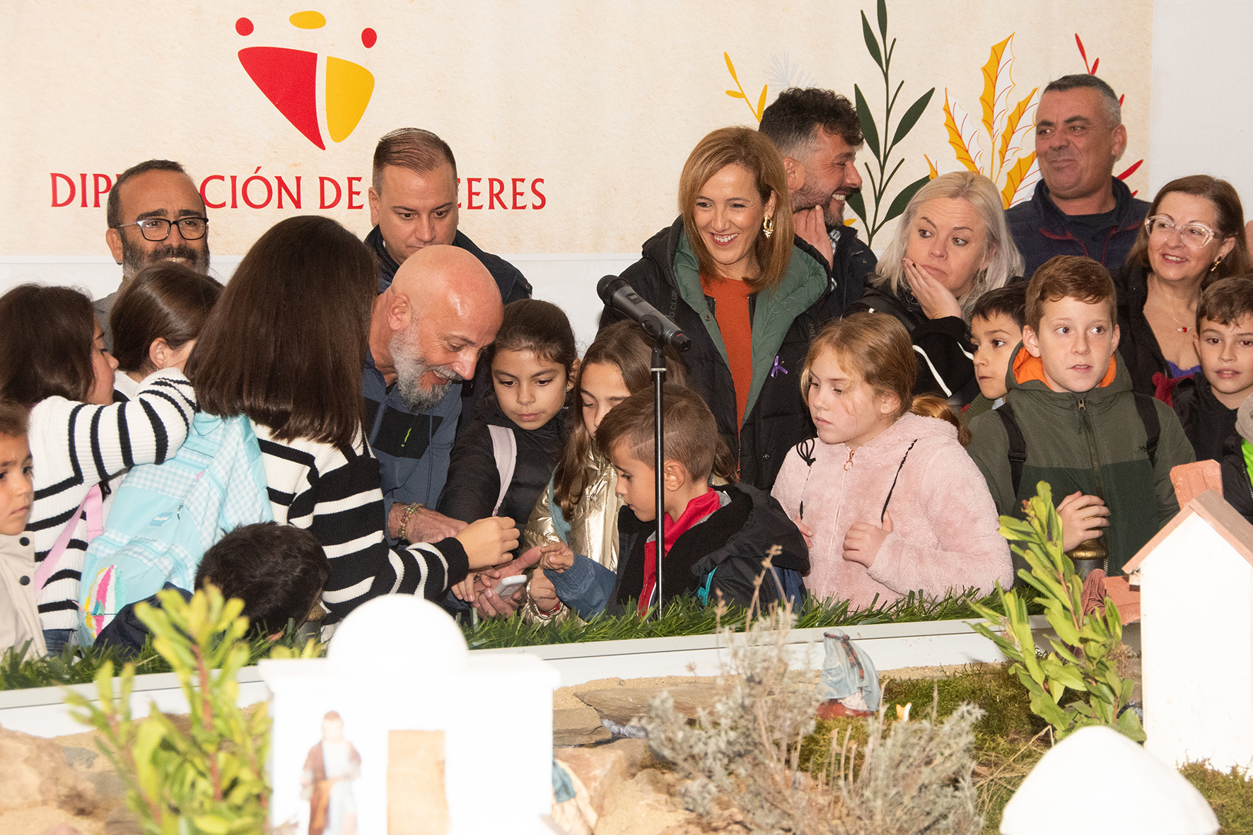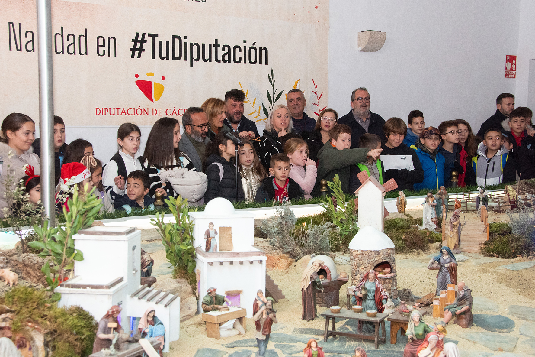 Los que han provocado este “milagro”, en esta ocasión han sido niños y niñas de los CEIP “Nuestra Señora de la Candelaria”, de Fresnedoso de Ibor; “San Bartolomé”, de Bohonal de Ibor; “Eugenio Jiménez Igual”, de El Gordo, y “María de los Ángeles Ballesteros”, de Vegaviana, que han accionado el dispositivo y han hecho que más de 300 figuras cobren vida, que el agua del río circule, que los huertos den frutos, que anochezca y amanezca… Un año más, el Belén Monumental ha arrancado exclamaciones de asombro y aplausos de niños y mayores.