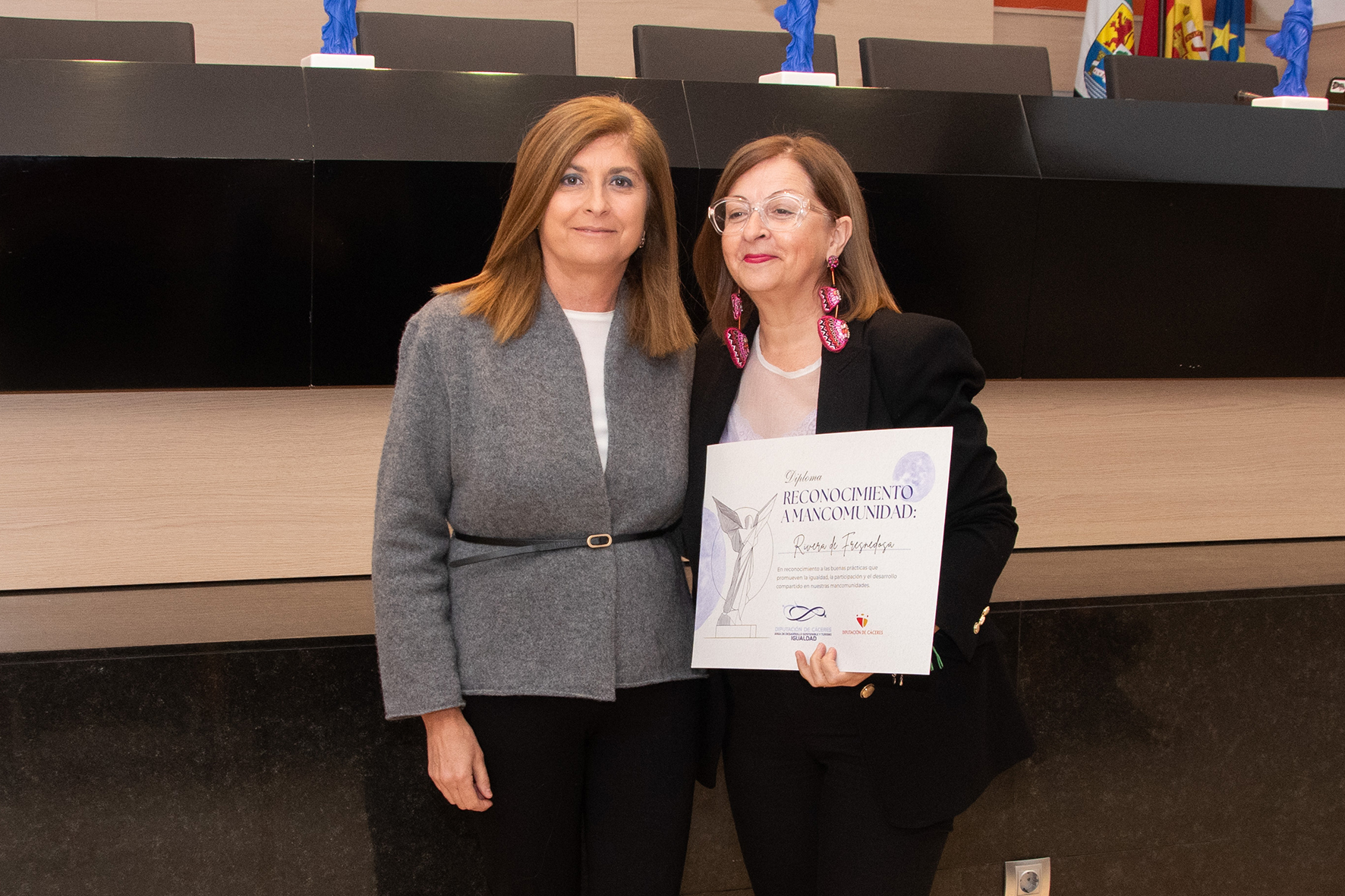 La vicepresidenta primera de Territorio, Igualdad y Cultura de la Diputación de Cáceres, Esther Gutiérrez, acompañada de la diputada de Igualdad, Antonia Molina, ha clausurado el acto en el que se ha hecho entrega de estos galardones y ha destacado la participación intergeneracional en todos ellos, con la implicación especial de la comunidad educativa, ya sea a través de las familias, las AMPAS o los equipos directivos de los centros, también del movimiento asociativo femenino y, de manera muy especial, de las Oficinas de Igualdad y de las personas mayores.