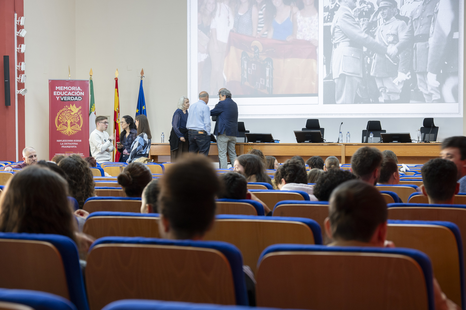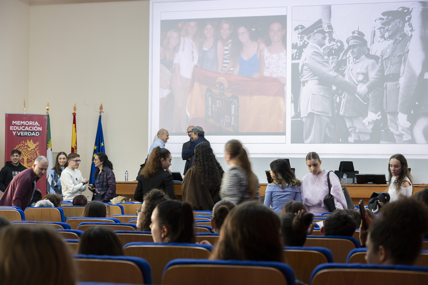 La actividad se enmarca en el programa que la Diputación de Cáceres viene desarrollando en institutos y en la Universidad de Extremadura para acercar a los y las jóvenes la Memoria Histórica y Democrática, promover el conocimiento de la dictadura franquista y abrir espacios de reflexión frente a la desinformación, los discursos de odio y la nostalgia del franquismo que todavía persiste entre parte de la juventud.