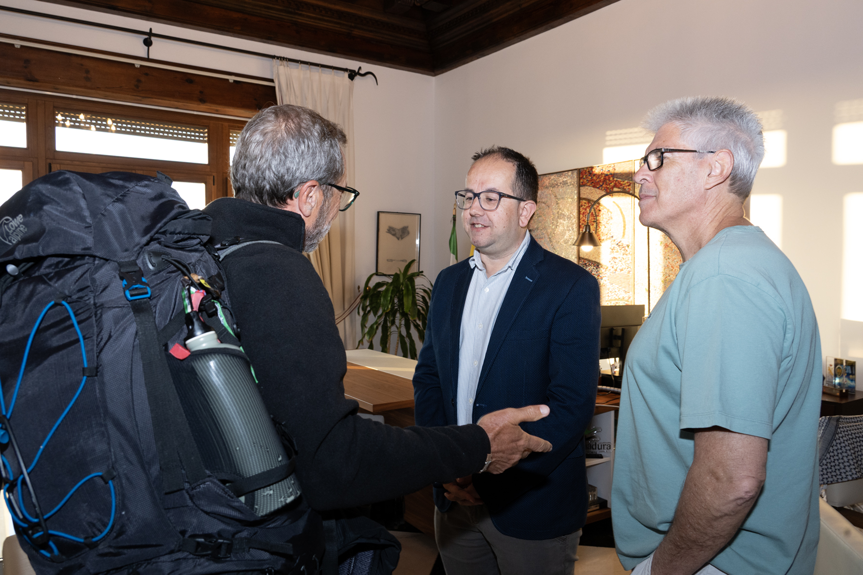 La etapa de este lunes del caminante Manuel Calderón Hidalgo ha partido del Palacio Provincial de la Diputación de Cáceres, donde se ha reunido con el diputado de Reto Demográfico y Espacios Naturales Protegidos, Javier Díaz Cieza, y ha querido agradecer la colaboración desde el inicio de la institución con el proyecto la Vuelta a Extremadura Caminando, que está llevando a cabo este villanovense con la idea de “unir el territorio y dar visibilidad a la región”.