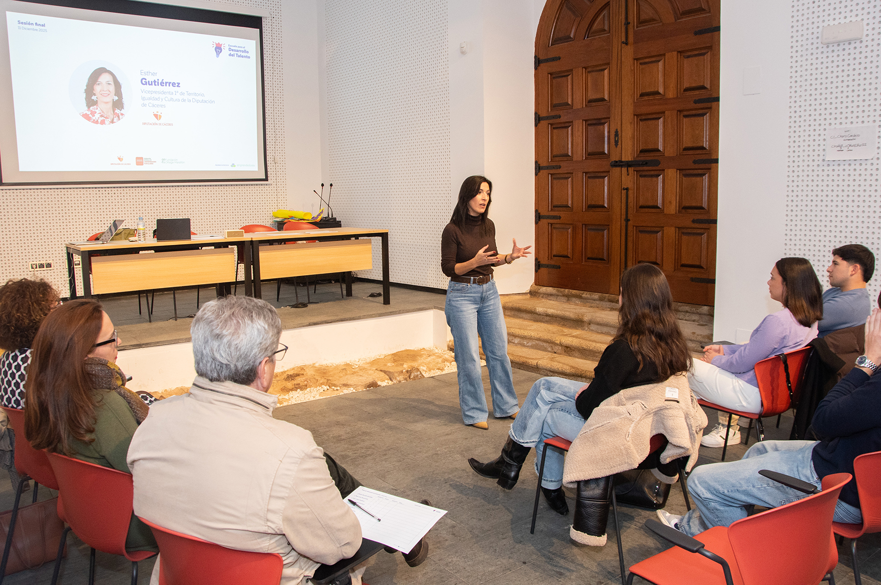 12-12-2015, Cáceres.- “No solo sois el futuro, ya sois el presente”. Así se dirigía la vicepresidenta primera de Territorio, Igualdad y Cultura de la Diputación de Cáceres, Esther Gutiérrez, a las y los 17 jóvenes que han concluido la segunda edición de la Escuela de Talento creada por la institución provincial y la Federación Española de Universidades Populares (FEUP).